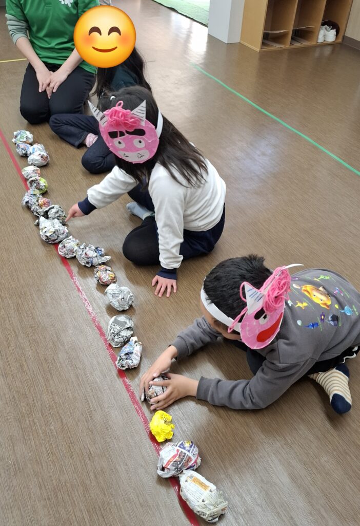 「いーち、にー、さーん!」と友だちと声を合わせて夢中で数を数える姿も見られ、遊びの中で自然と数字に親しむ、微笑ましくも真剣な時間となりました。