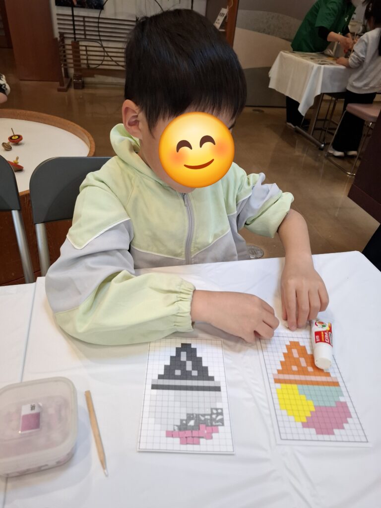 完成した作品を手に「見て!」と嬉しそうに見せてくれる姿がとても印象的でした。