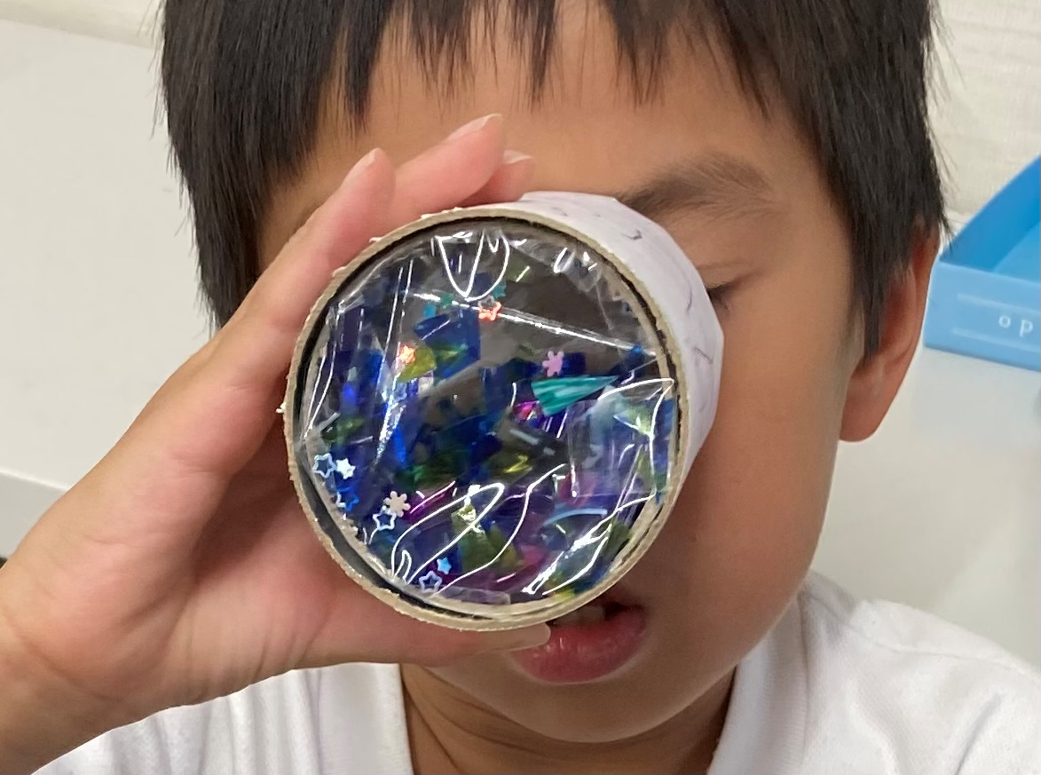 キラキラの万華鏡ができてみんな嬉しそうにのぞき込んでいました。